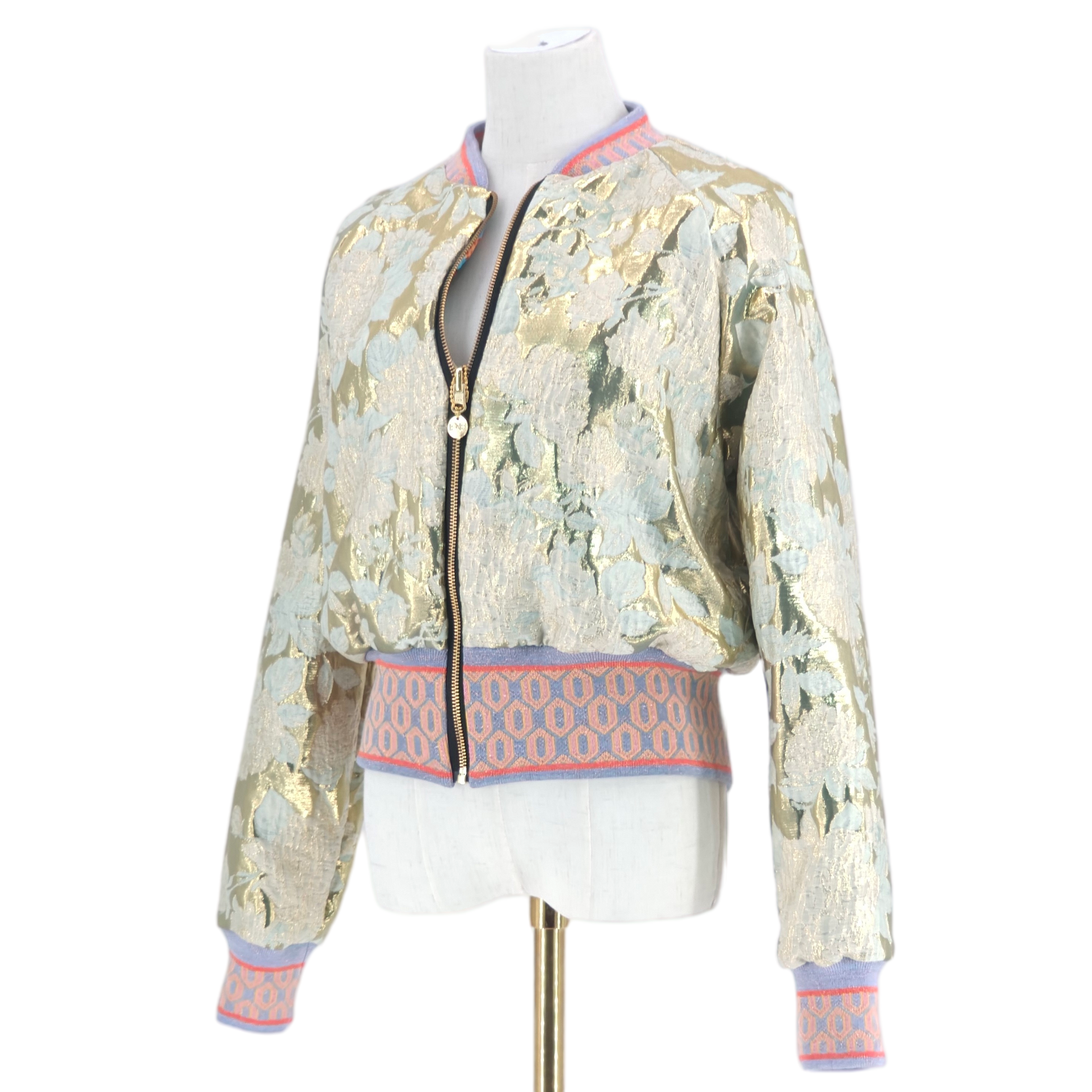 Large Gold and Teal Flower Brocade