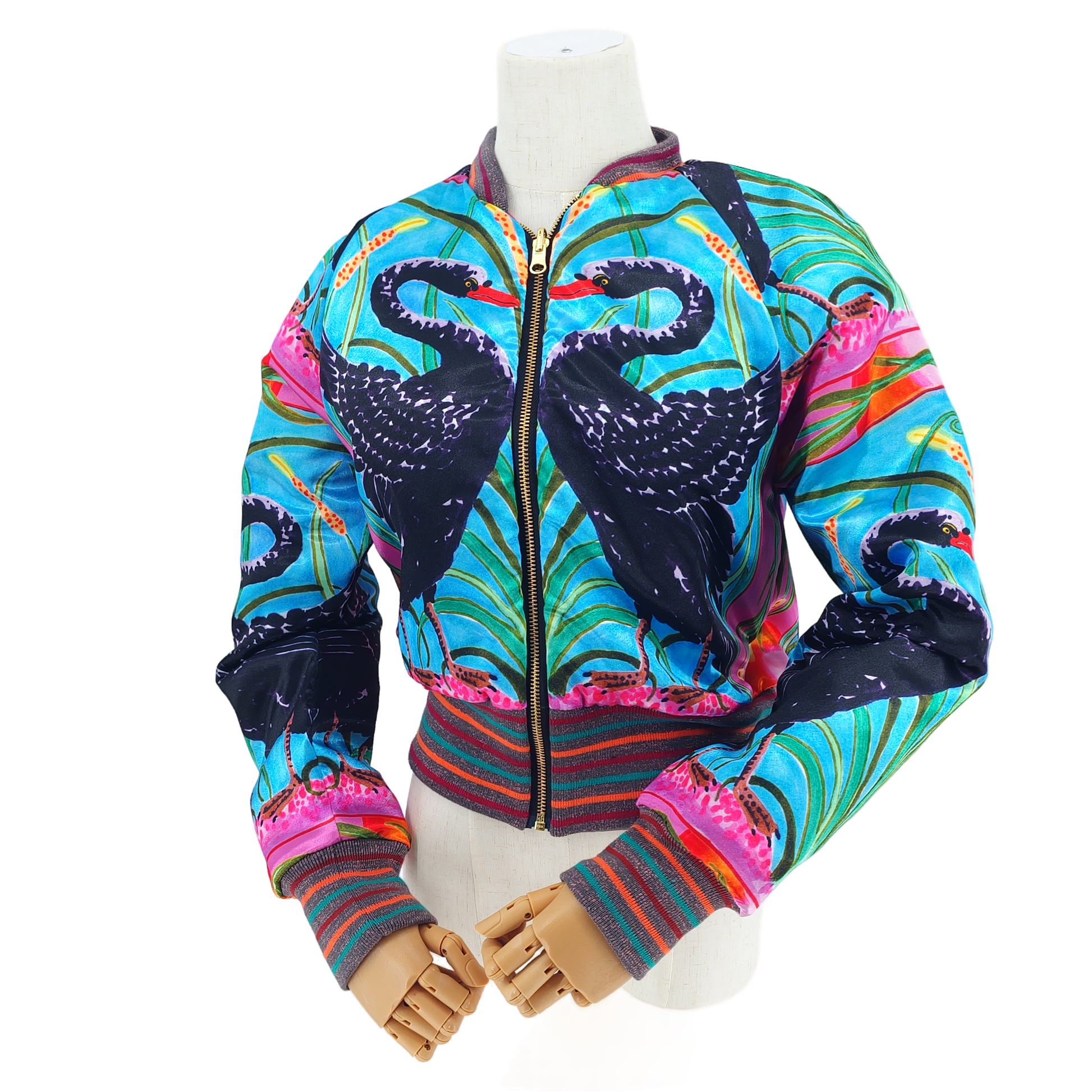 Small Light Blue, Coral and Gold Flower Brocade